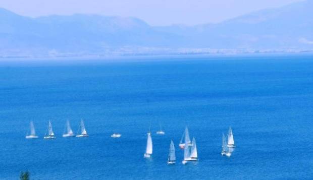 抚仙湖帆影金元速配。 通讯员潘泉摄
