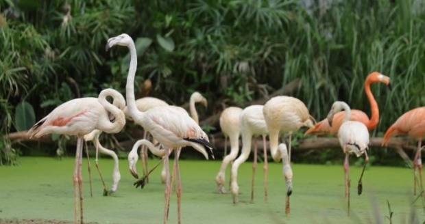 r为了让游客能全方位领略湿地鸟类的生活场景,云南野生动物园还开放了火烈鸟餐厅观景平台。7月刚来到这里的新朋友“非洲火烈鸟”就住在餐厅旁的湿地,游客在用餐的同时便能将美景尽收眼底。
