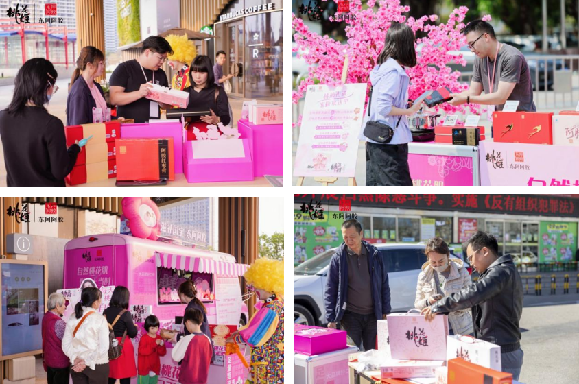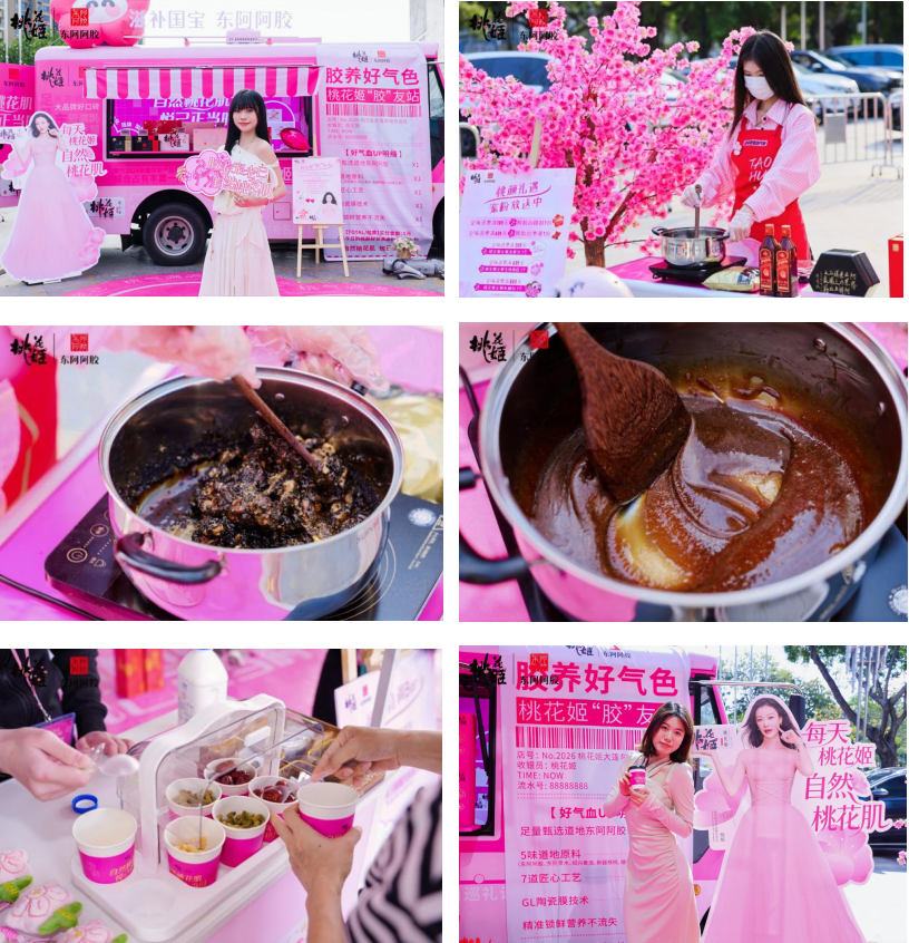 围绕年轻消费者“愿意停、愿意玩、愿意拍”的线下偏好,桃花姬把互动内容设计得更轻松,也更有记忆点:“桃气DIY”可上手参与,“桃气小票”自带出片属性,“桃气特调”营造春日氛围,而现场熬胶,则将承载桃花姬品牌非遗工艺底蕴的制作过程,转化为可被观看、可被感知的现场体验。消费者来到现场,不再只是匆匆路过、看看热闹、领完礼品便离开,而是会因为好玩而停下脚步,因为好看而举起手机,因为有体验感而真正走进桃花姬的品牌场景之中。