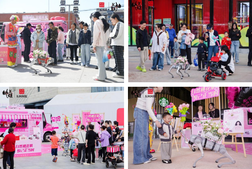 与此同时,为了进一步放大现场热度与互动氛围,桃花姬“胶”友站还加入了机器狗趣味互动、专属礼赠等更具吸引力的内容设置。机器狗一亮相,便迅速成为现场的“人气焦点”,吸引众多消费者驻足围观、拍照记录,也让整个活动现场的气氛被快速点燃,进一步提升了品牌在商圈空间中的可见度与关注度。